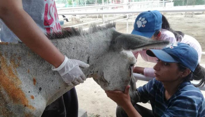 “This donkey was reported to us from Gulshan-e-Iqbal… It appears he has been pelted and beaten on the head repeated by jagged edge objects or stones. His skull is completely visible, maggots have eaten all the flesh within it. His left eye has been gouged out,” the post read.